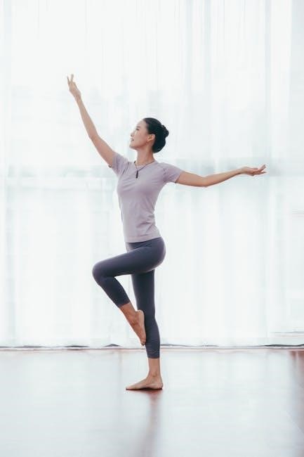 Triangle Pose (Trikonasana) further enhances stability and opens the hips and chest, as detailed in many PDF guides.